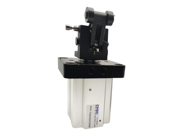 阻擋氣缸具體主要用于倍速鏈、差速鏈生產(chǎn)線,用于止停生產(chǎn)線上的托盤,因此也叫止動氣缸。此種氣缸由于其工作行程固定,因此也常被叫做定程桿氣缸。氣缸結構是氣缸加上彈簧,未通氣之時在彈簧的作用下是處在阻擋狀態(tài),通過行程開關控制氣體進去氣缸,此時氣缸下降,放開阻擋,行程開關打開,氣缸在彈簧的作用下,回彈成阻擋狀態(tài)。