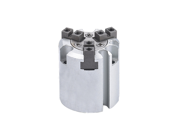 三點(diǎn)夾爪的活塞上有一個(gè)環(huán)形槽,每一個(gè)曲柄與一個(gè)氣動(dòng)手指相連,活塞運(yùn)動(dòng)能馬驅(qū)動(dòng)三個(gè)曲柄動(dòng)作,因而可控制三個(gè)手指同時(shí)打開和合攏 [3] 。